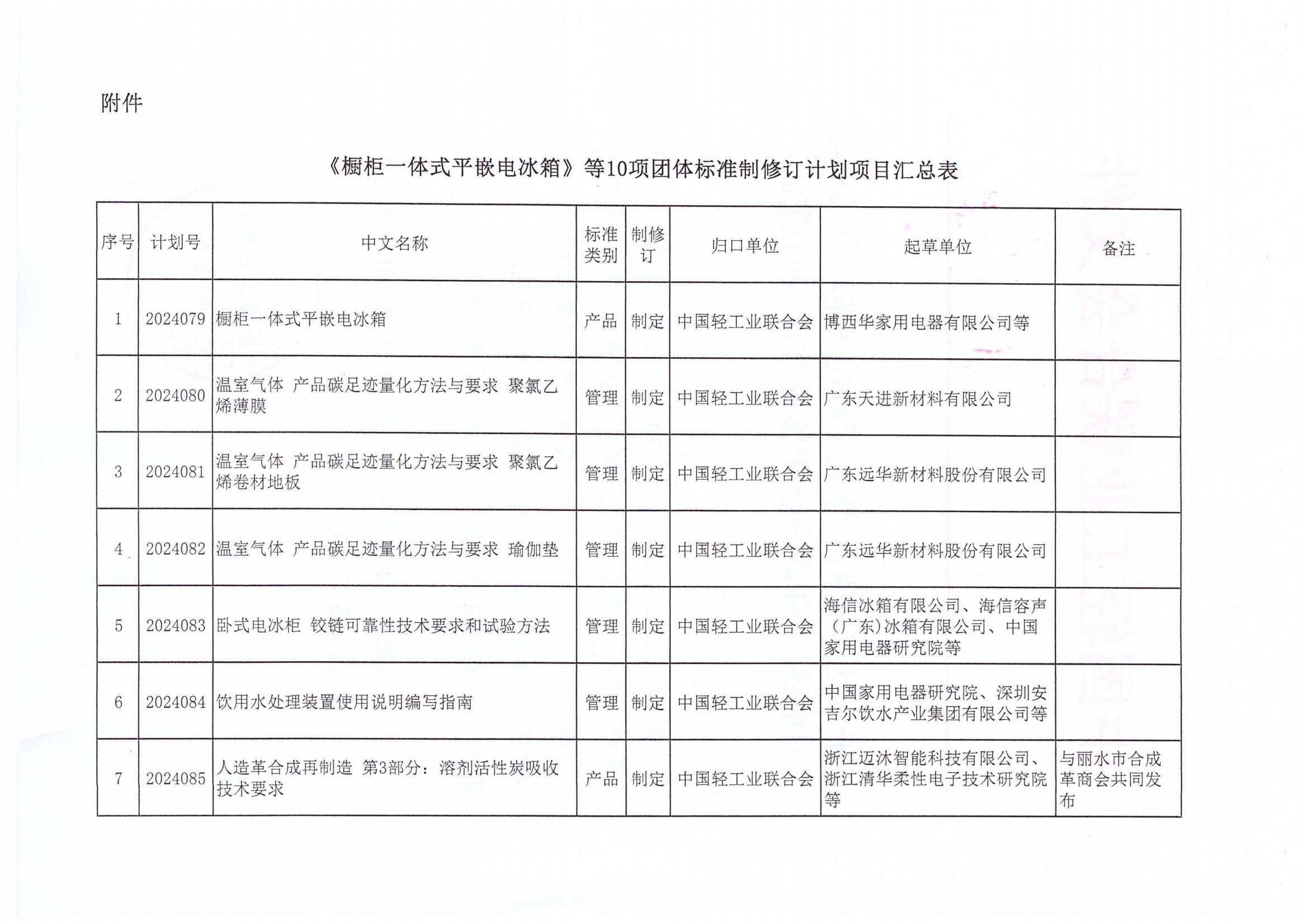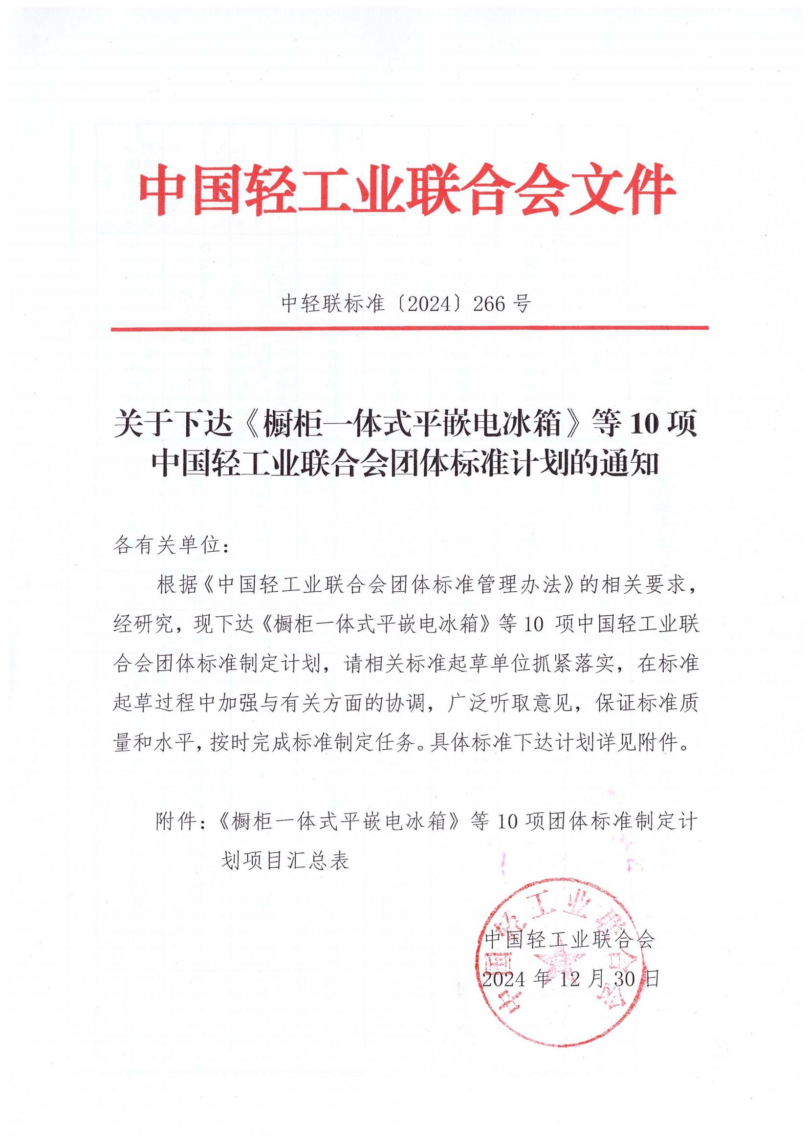 关于下达《橱柜一体式平嵌电冰箱》等10项糖心视频业联合会团体标准计划的通知