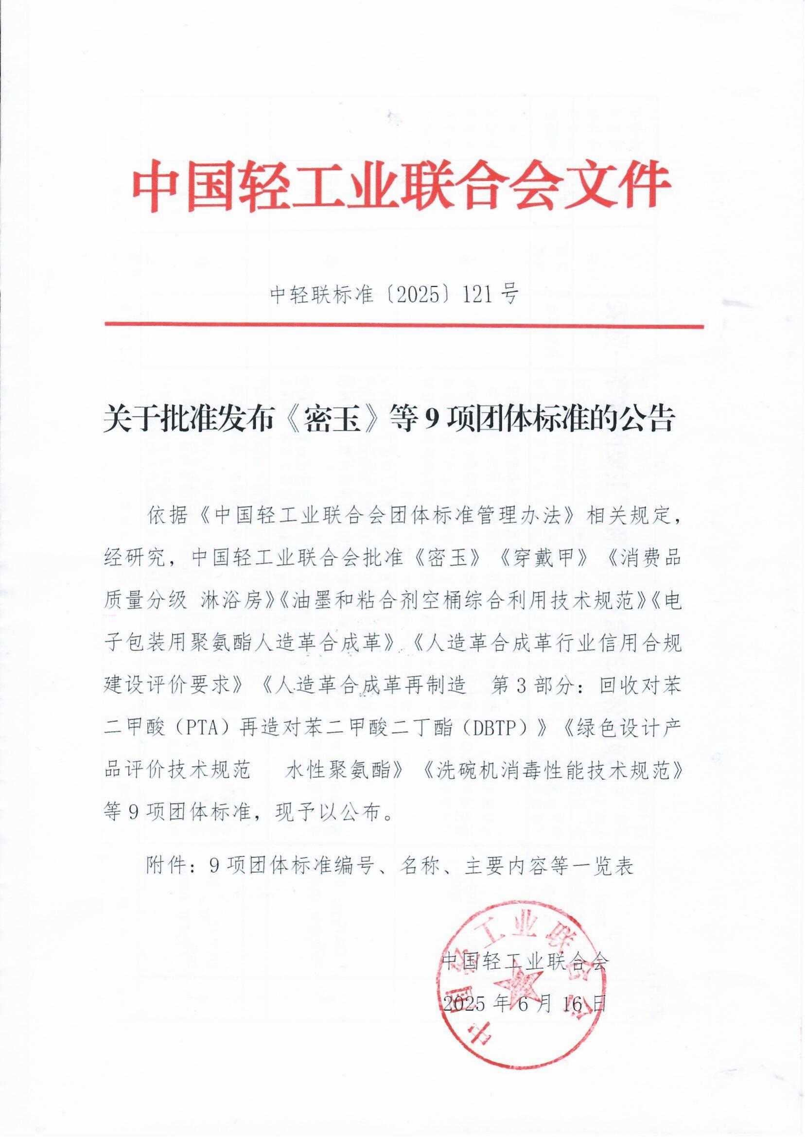 关于批准发布《密玉》等9项团体标准的公告